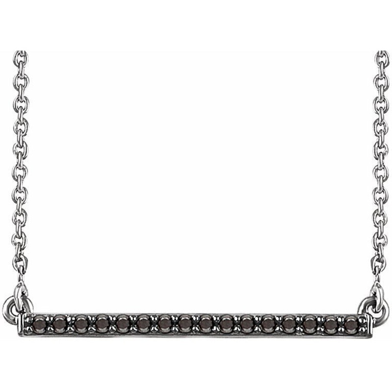 651738 / Black / 14K White / 1/6 Ctw Black Diamond Bar Necklace With Rho Plate