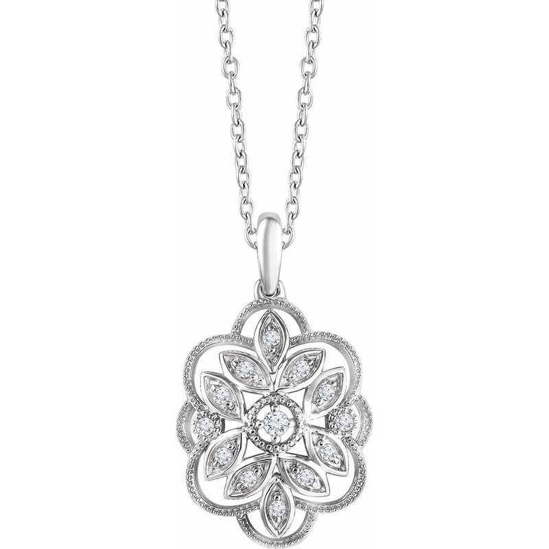 652601 / Set / 14K White / Polished / 1/6 Ctw Diamond 16-18 Inch Necklace