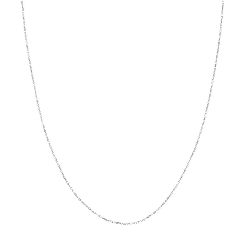 Chain: Bar Link Metal: 14K White Gold Length: 18 Inches Width: 0.9mm Vendor Style No.: G-BD10-4W18