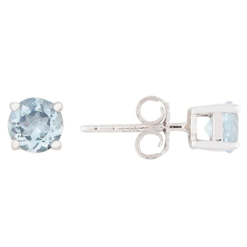 Style: Stud Metal: 14K White Gold Stones: (2) Round Aquamarines Total Carat Weight: 0.90Ctw Setting: Prong Vendor Style No.: EW00428AQ