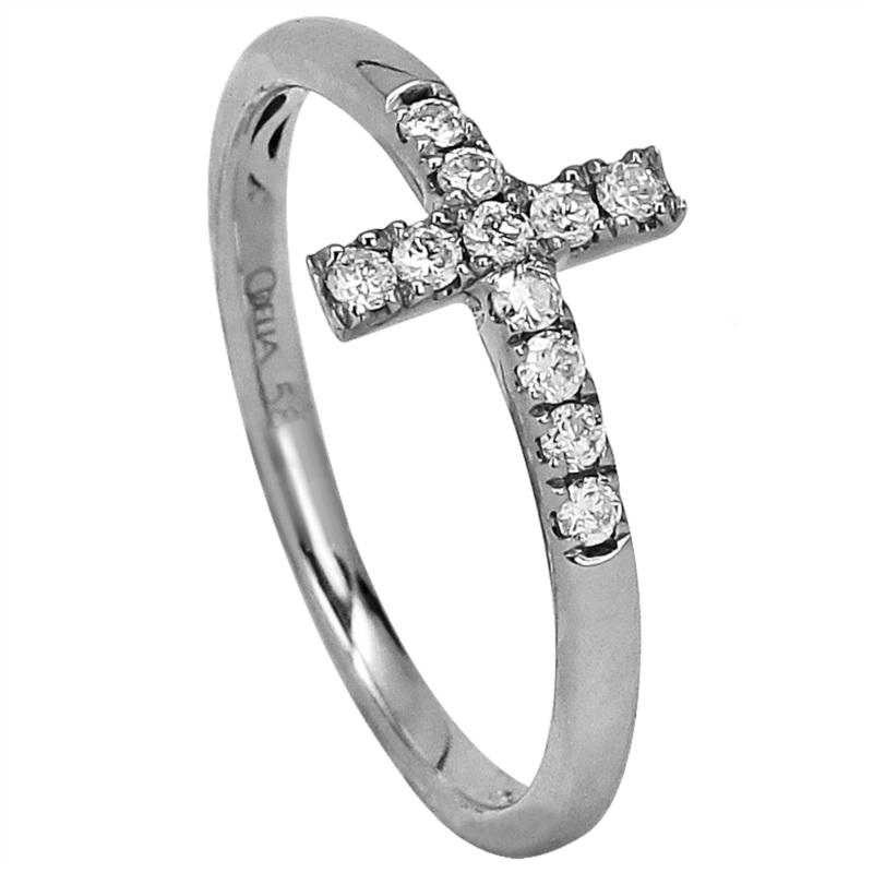 Ladies diamond cross ring in 14 karat white gold, 11 round brilliant cut diamonds with a total weight of 0.17 carat.