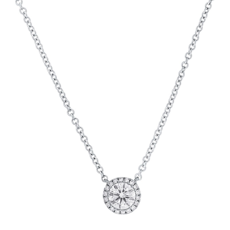 14K White Gold Diamond Halo Pendant Necklace