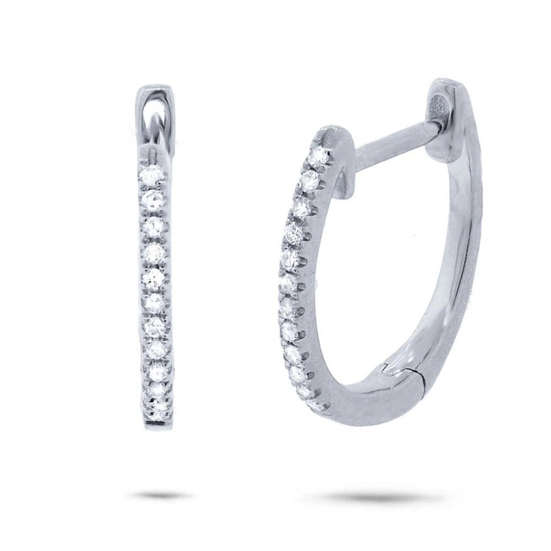14K White Gold Diamond Huggie Hoop Earrings