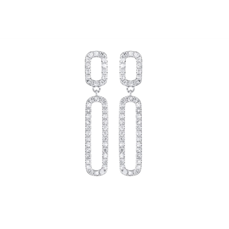 Be the first to review “14K White Gold Double Open Rectangular Design Diamond Dangle Earrings”