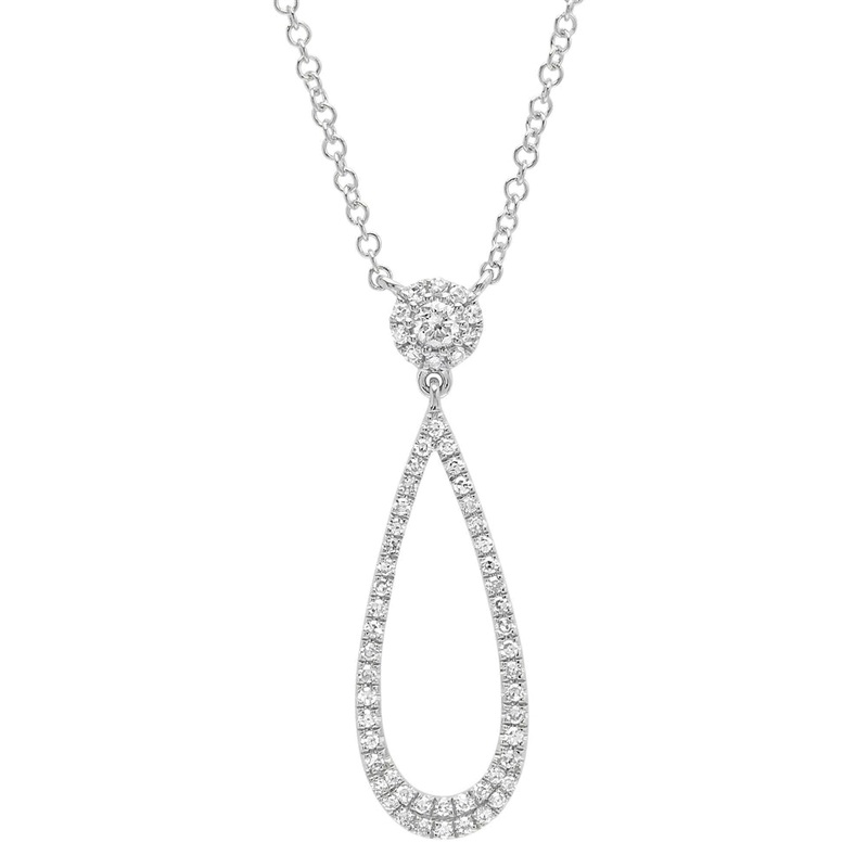14K White Gold Open Teardrop Diamond Pendant Necklace