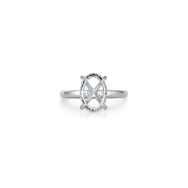 Ladies diamond ring in 14 karat white gold. Set in the hidden halo in the ring are 16 round brilliant cut diamonds with a total weight of 0.08 carat.