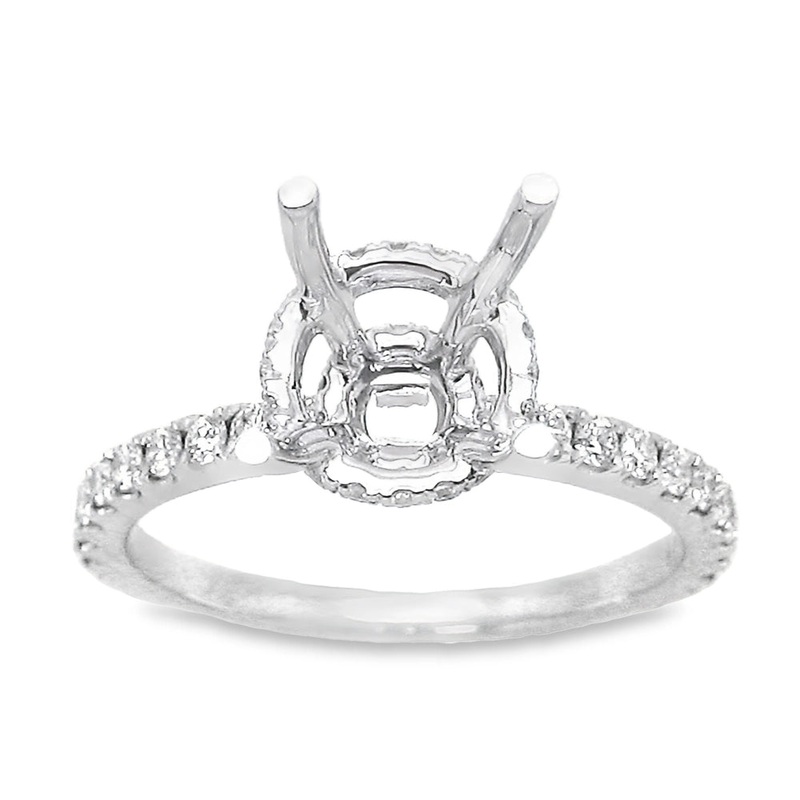 14K White Gold Semi-mount Ring with Double Diamond Hidden Halos