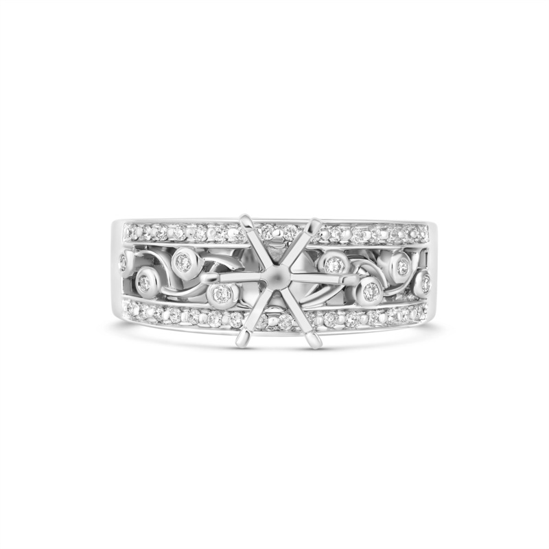 WGPF24373890114K White Gold Semi Mount, Wide, Bead Set, Decorative Center