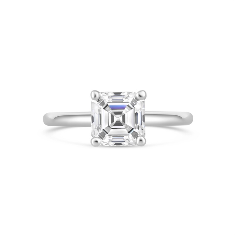 14K White Gold Solitaire Ring for Asscher Cut Diamond