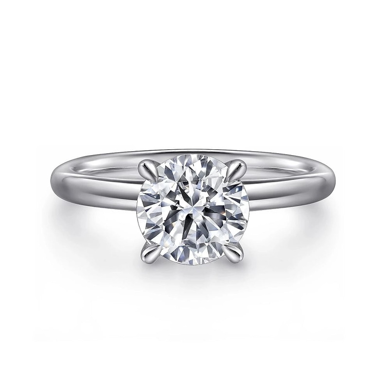 Ladies solitaire ring in 14 karat white gold.