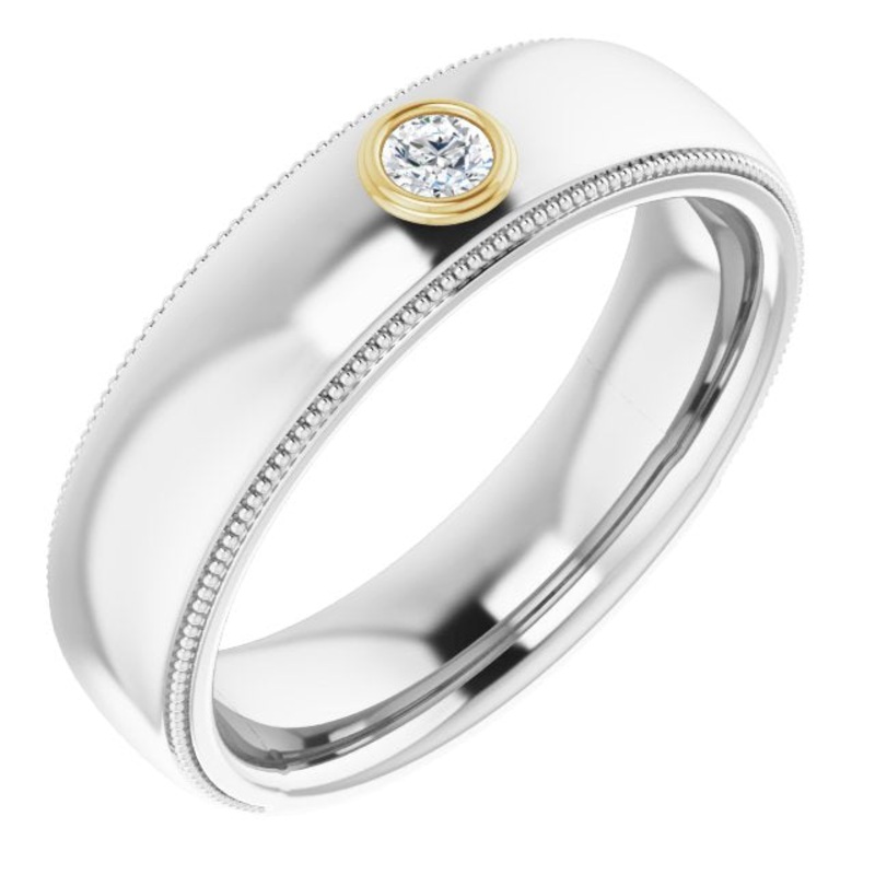 123214 / Set / 14K White/Yellow / Round / 3 Mm / Polished / 1/10 Ctw Mens Diamond Ring
