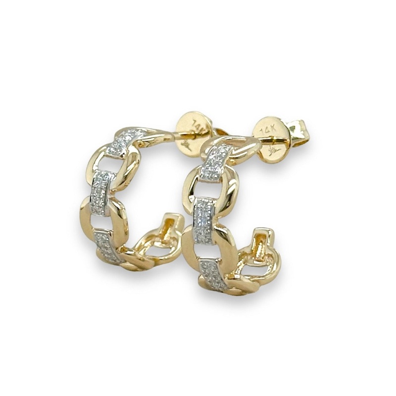 Enhance your elegance with these exquisite 14K Yellow Gold Diamond Link Earrings. The 0.13ctw diamonds, graded G/VS2, add a touch of luxury to any look. The delicate link design showcases the perfect balance of beauty and sophistication. Elevate your jewelry collection with these timeless and tasteful earrings.
