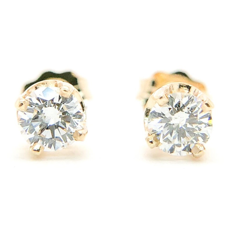 These stud earrings have been made in 14k yellow gold and hold 0.50cttw of round brilliant cut diamonds within their four prongs. These earrings measure 3.8mm in diameter, have posts with friction backs, and weigh 0.55dwt