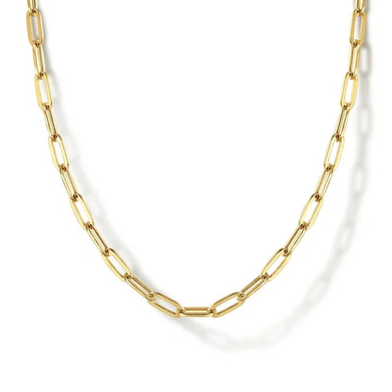 Don’t be fooled by its simple looksthis 14K yellow gold paperclip chain necklace packs a serious style punch! Its slim links can easily be layered for a trendier statement, so go ahead and make a statement that’ll be sure to turn heads. Grade A+ for modernity!