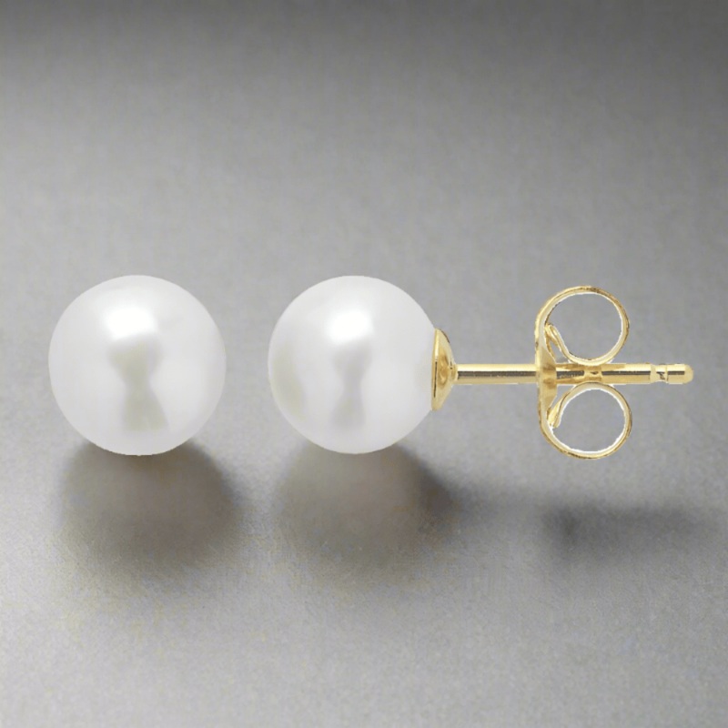 Indulge in opulence with our exquisite Akoya cultured pearls carefully placed on 14k yellow gold posts, accompanied by push-back closures for pierced ears. These luxurious pearl earrings offer timeless elegance and endless possibilities – a must-have style for any occasion.