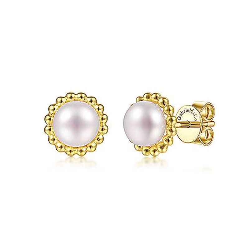 Be the first to review “14K Y Gold 6mm Pearl with Beaded Frame Stud Earrings”