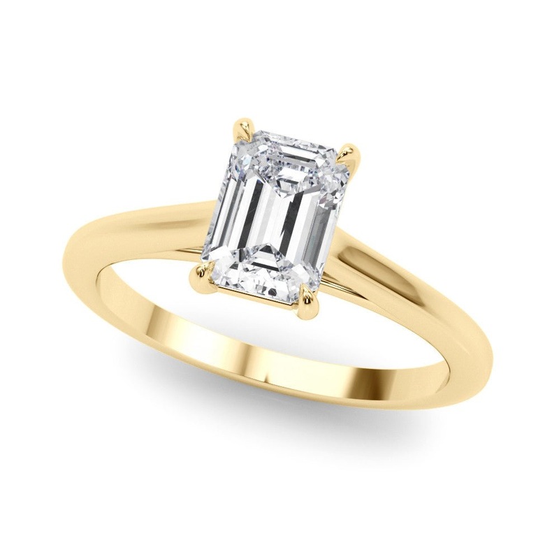 Elevate your style with our 14K yellow gold emerald cut mounting. Crafted with luxury in mind, this emerald cutl mounting adds sophistication to any outfit. Made of premium 14K gold, it is sure to make a statement and become a timeless piece in your collection. Made to fit a 9x7mm emerald cut diamond.