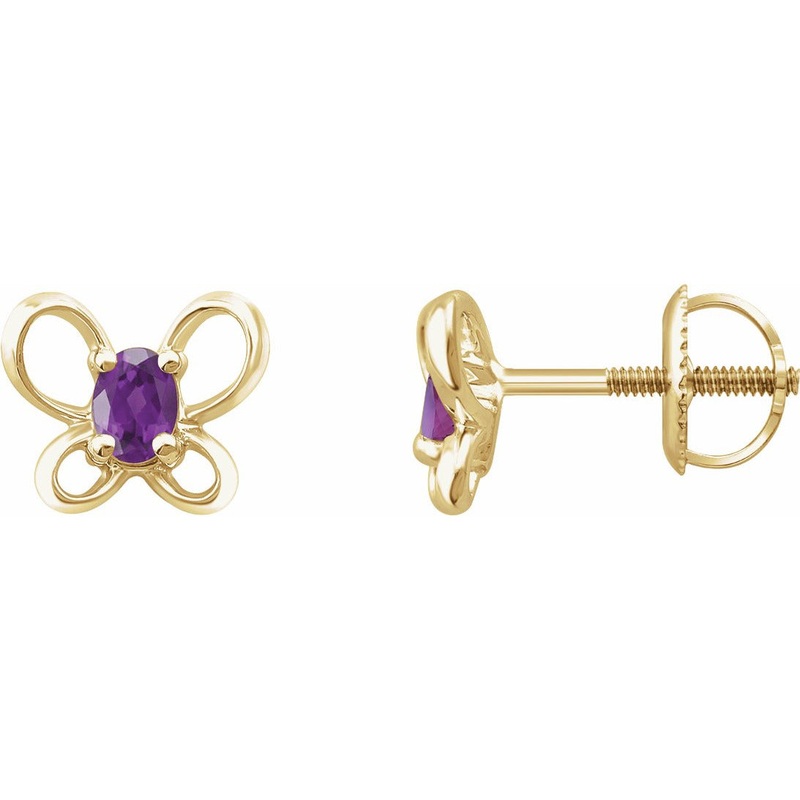 653416 / Set / 14K Yellow / February / Pair / Threaded Post / Without Box / Polished / Butterfly Youth Earrings W/Threaded Backs