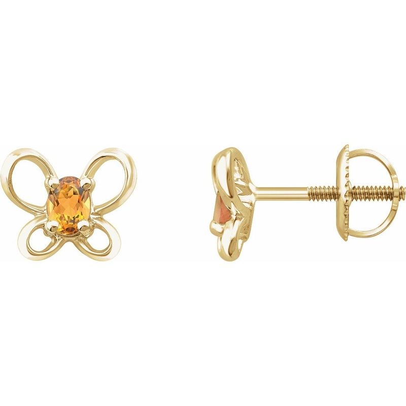 653416 / Set / 14K Yellow / November / Pair / Threaded Post / Without Box / Polished / Butterfly Youth Earrings W/Threaded Backs