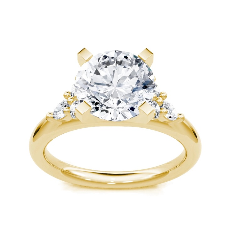Ladies diamond ring in 14 karat yellow and white gold. Set in the ring are four round brilliant cut diamonds with a total weight of 0.16 carat and two marquise cut diamonds with a total weight of 0.16 carat.