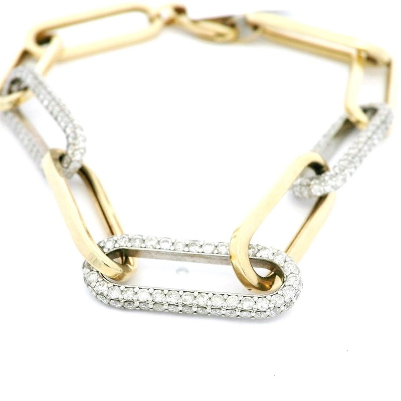 Style: Paperclip Metal: 14K Yellow Gold Stones: (321) Round Diamonds Total Carat Weight: 4.65Ctw Setting: Pave Length: 8 Inches Vendor Style No.: BR72387