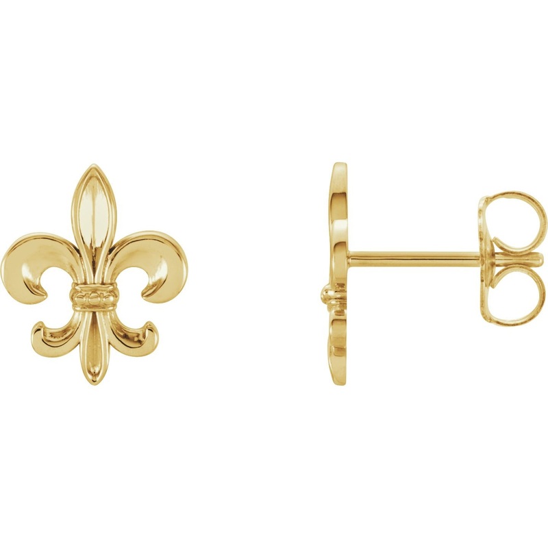 86109 / 14K Yellow / 10.70X08.95 Mm / Fleur De Lis Stud Earrings