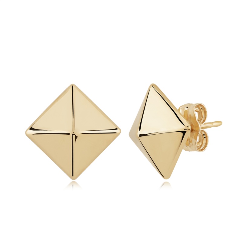 14K Yellow Gold 6mm Pyramid Stud Earrings