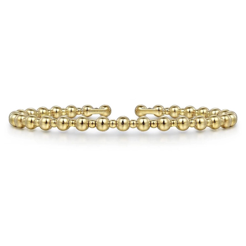 Ladies beaded cuff bracelet in 14 karat yellow gold.