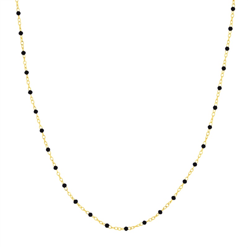 WPFM91434667098914K Yellow Gold Black Enamel Bead on Piatto Chain Necklace