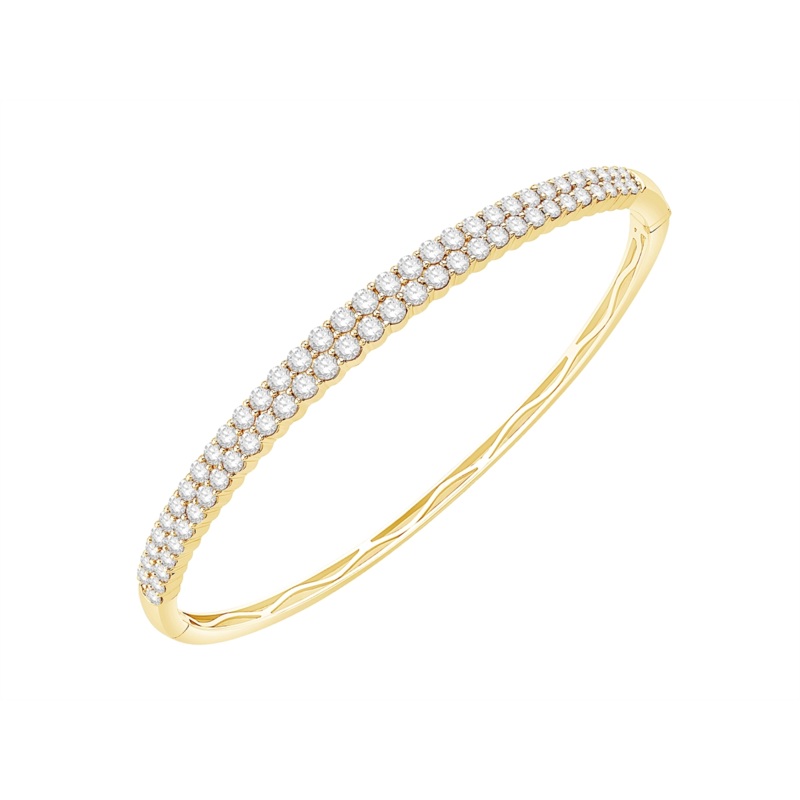 Ladies diamond bracelet in 14 karat yellow gold. Set in the bangle bracelet are 64 round brilliant cut diamonds with a total weight of 3.00 carat.