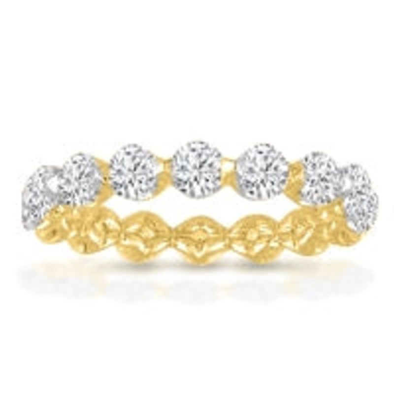 Ladies diamond band in 14 karat yellow gold. Set in the eternity band are 23 round brilliant cut diamonds with a total weight of 1.00 carat. *Not sizable