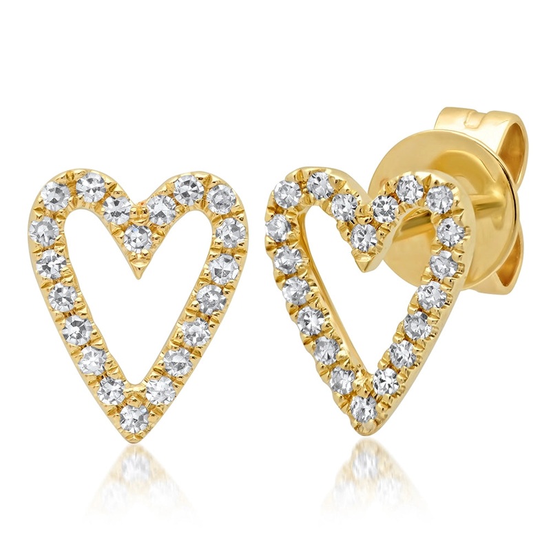 14K Yellow Gold Diamond Open Heart Stud Earrings