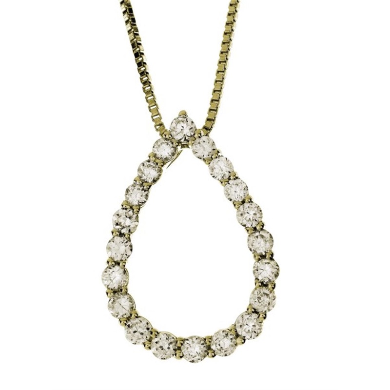 Style: Pear Metal: 14K Yellow Gold Stones: (20) Round Brilliant Cut Diamonds Total Carat Weight: 0.77 Setting: Shared Prong Length: 18 Inches Vendor Style No.: CCF-06700-Y