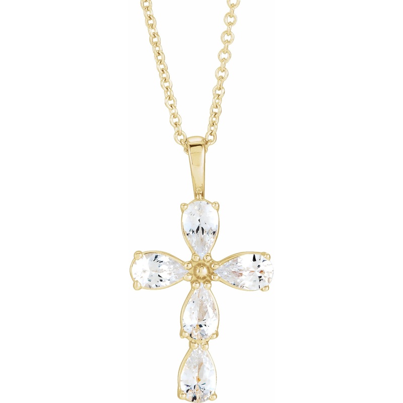 R42385 / Necklace / Set / 14K Yellow / White Sapphire / 23.52 X 12.86 Mm / 16-18 In / Polished / Genuine White Sapphire Cross Necklace