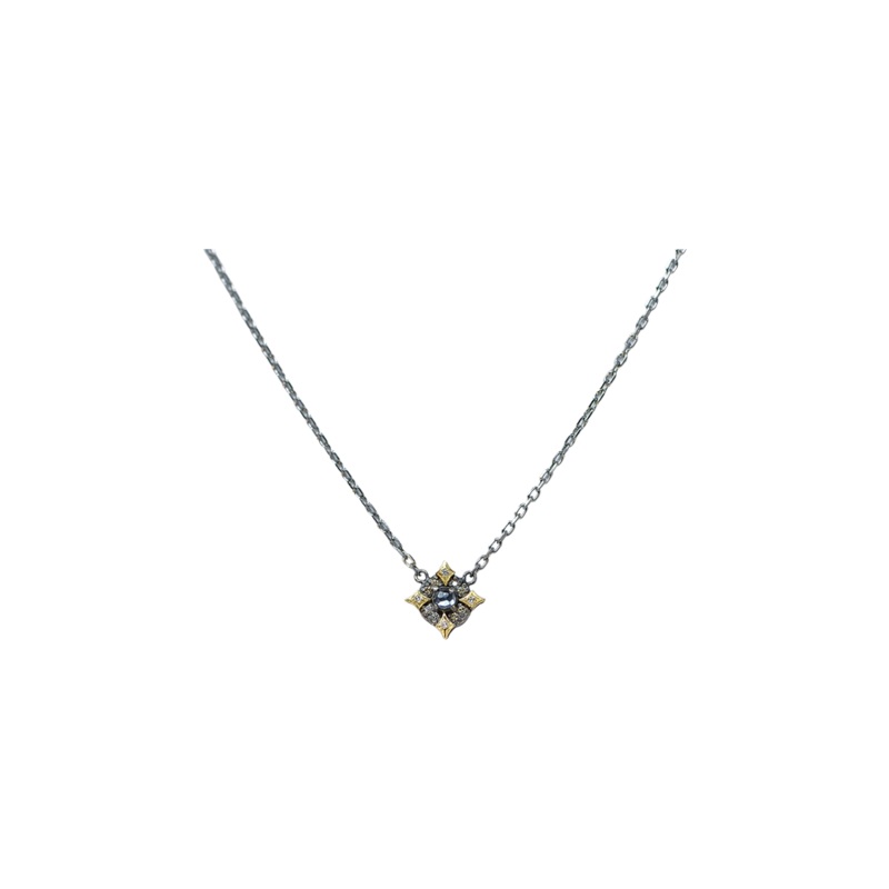 Necklace 18K Yellow Gold and grey sterling Silver With 0.036 CT white and Champagne Diamonds and Round Hematite.
