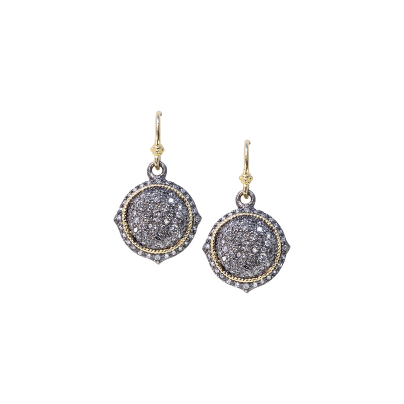 Earring 18k Yellow Gold and Grey Sterling Silver 20mm with 1.106 CT white and Grey Diamonds.