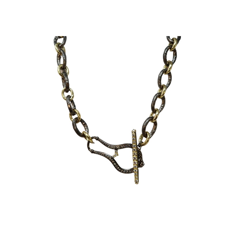 18k Yellow Gold and Grey Sterling SilverNecklace with17mm oval links 2.117CT champagne and white diamonds.