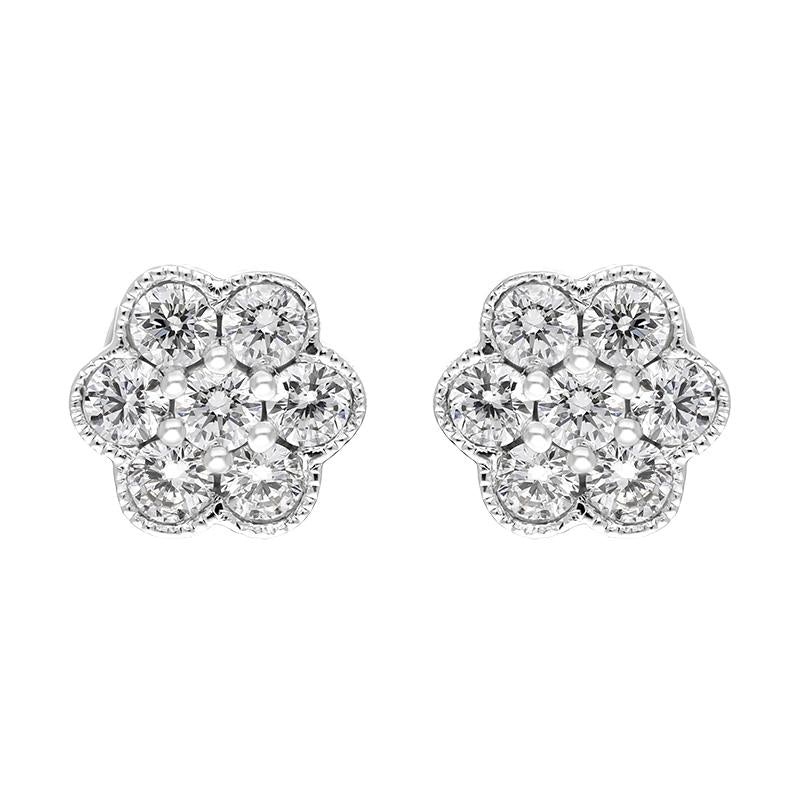 18ct White Gold 0.25ct Diamond Flower Cluster Stud Earrings, FEU-2273.