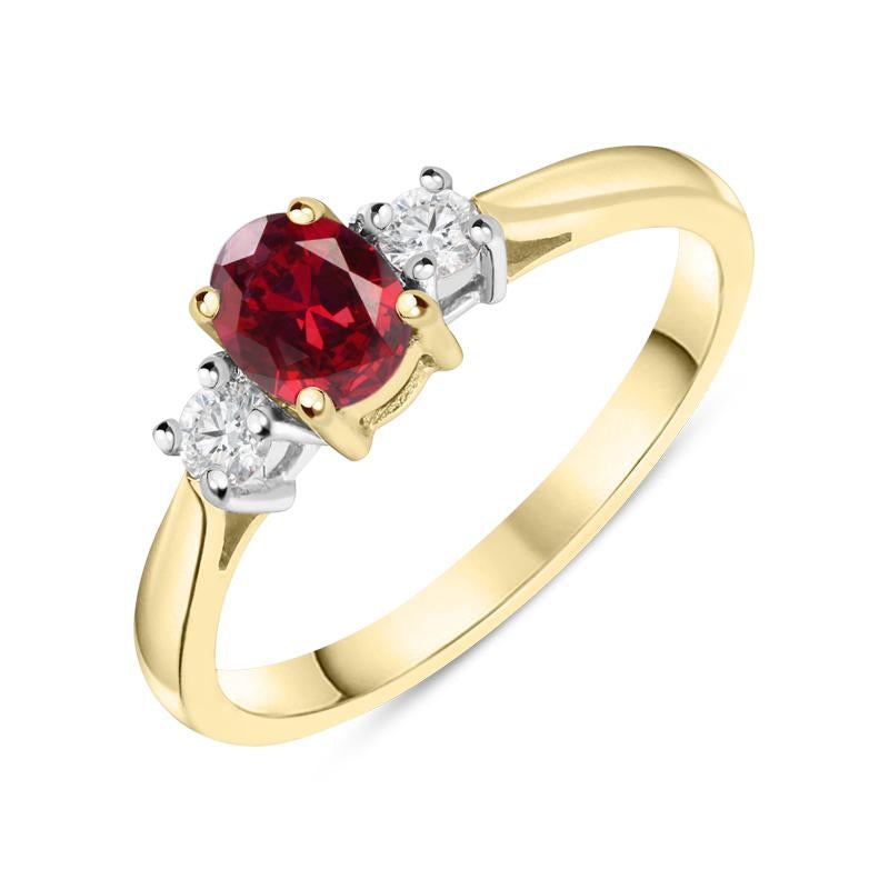 18ct Yellow Gold 0.57ct Ruby Diamond Trilogy Ring, FEU-1118.