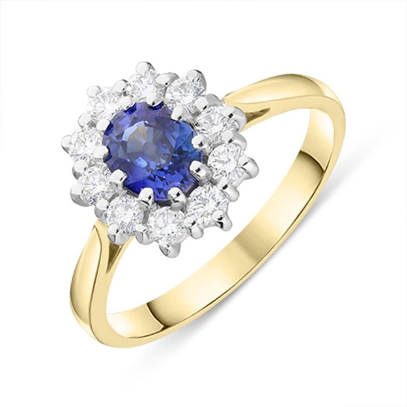 18ct Yellow Gold 0.90ct Sapphire Diamond Oval Cluster Ring, FEU-1951.