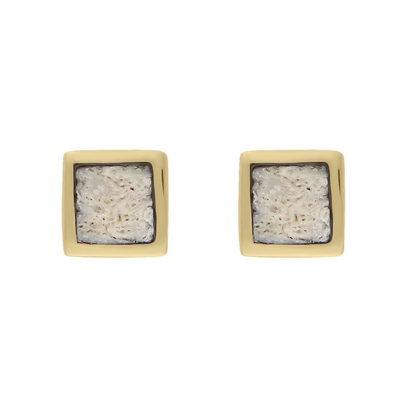 18ct Yellow Gold Coquina Dinky Square Stud Earrings, E034