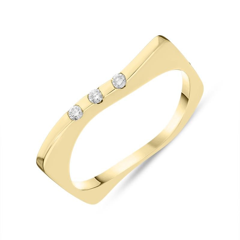 Contemporary and luxurious, this exquisite ring has been finely hand crafted in 18ct yellow gold and features a feminine single wave design, adorned with three white sparkling diamonds set into the band.Designed perfectly for everyday wear, this diamond set ring would make the perfect dress or eternity ring.