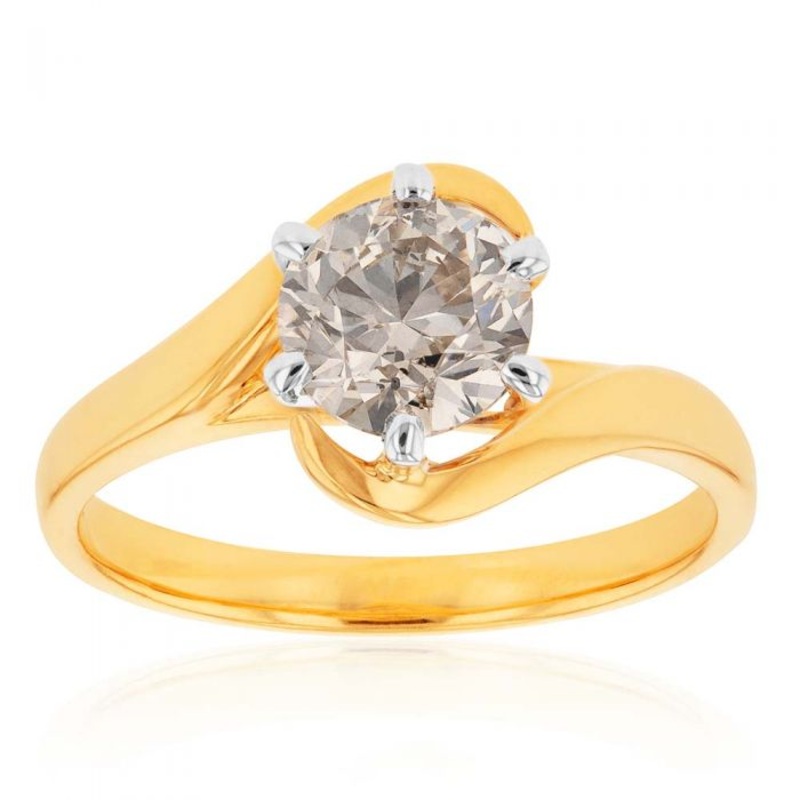 A 18ct Yellow Gold Solitaire Ring With 1.5 Carat Australian Diamond with a design to leave anyone speechless. The long gemstone – a large 1.5 carat Australian diamond – is set in white gold and wrapped in 18ct yellow gold. Against gold, the beauty and colour of this amazing gemstone is only made more striking.
