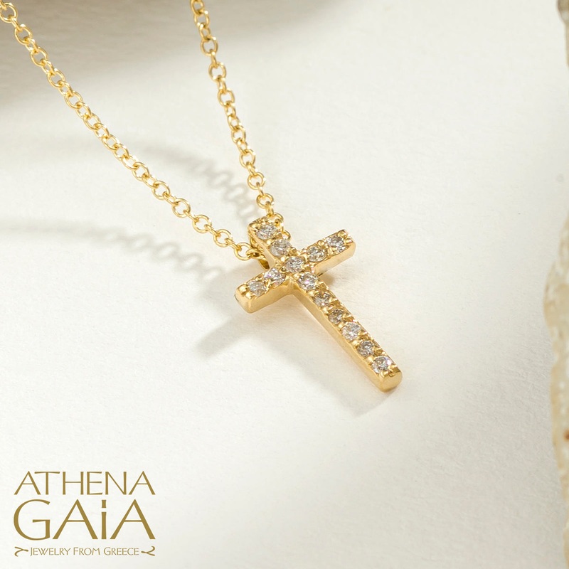 The 18k Diamond Pave Dash Cross is made of high-quality gold and adorned with sparkling diamonds. This cross is available in yellow, rose, or white gold and is perfect for baptisms or as a daily reminder of faith.