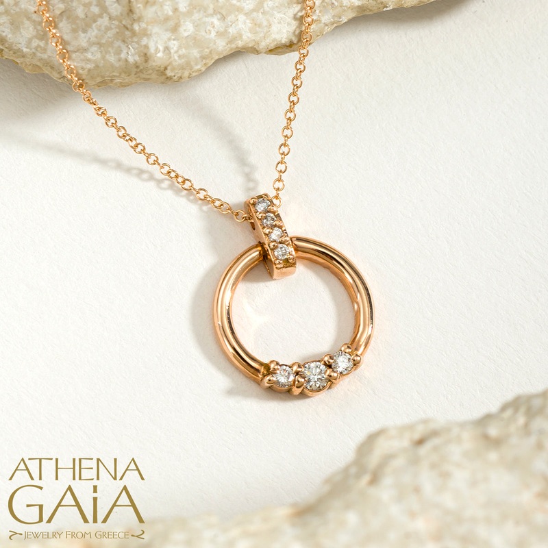 18k Gold Diamond Ring Pendant with Necklace