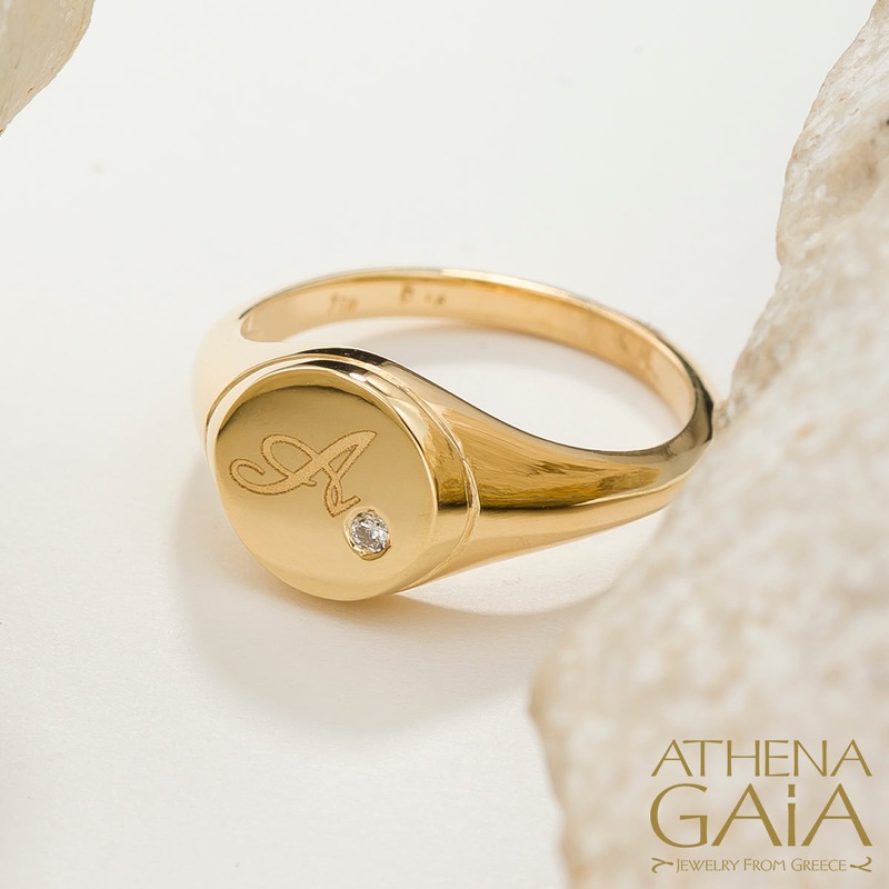 R829523218k Gold Etched Initial Signet Ring