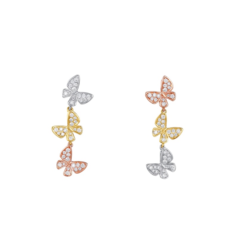 Be the first to review “18K Tri Gold Diamond Butterfly Dangle Earrings”
