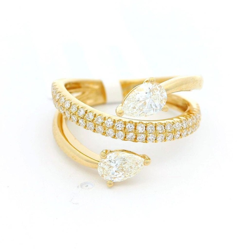Style: Bypass Metal: 18K Yellow Gold Stones: (2) Pear Diamonds (50) Round Diamonds Total Carat Weight: 0.65Ctw Setting: Prong Set Finger Size: 6 Vendor Style No.: ALR-19830-Y