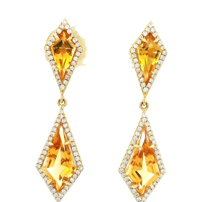 Style: Dangle Metal: 18K Yellow Gold Stones: (4) Kite Citrines (134) Round Diamonds Total Carat Weight: 4.90Ctw Setting: Prong Vendor Style No.: E74891