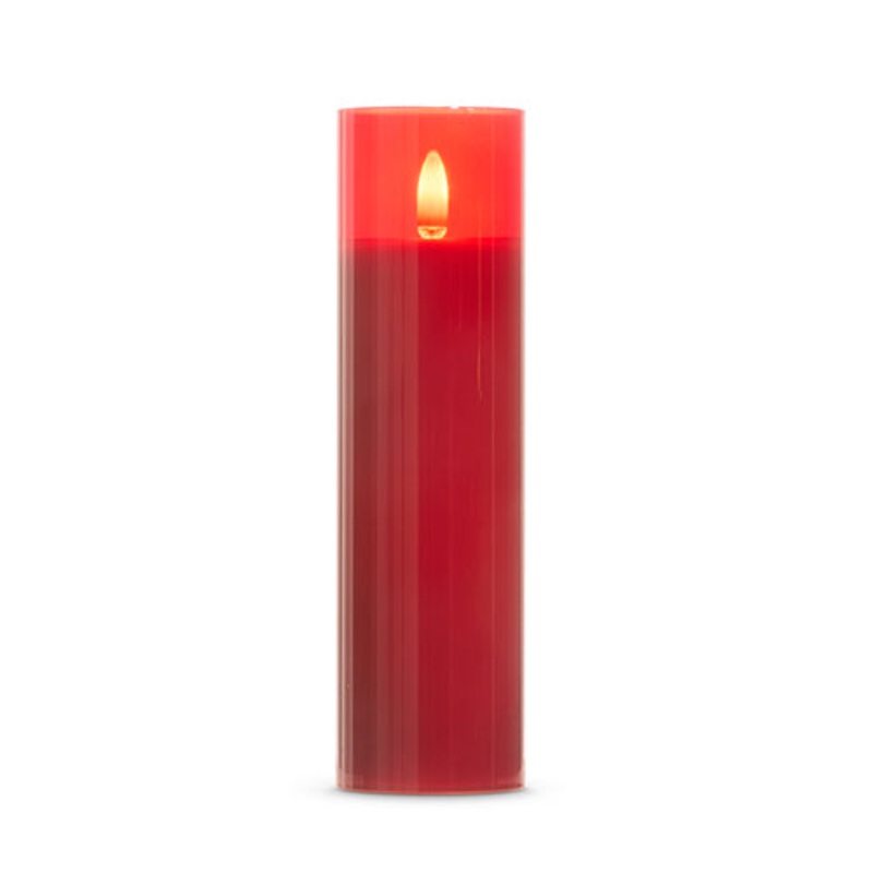 Red glass red wax pillar candle is glorious. Perfect for Christmas but also ideal for Valentine’s Day. Requires 2 AA batteries. 6-hour timer repeats every 18 hours. Battery life is approximately 220 hours. Remote ready.